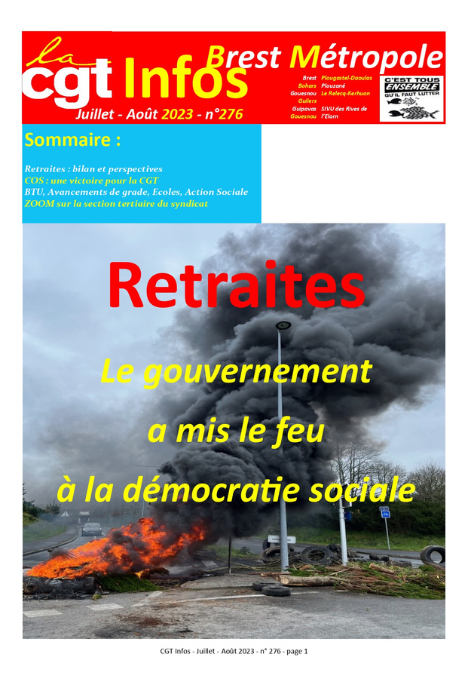 Vie Syndicale CGT Infos Brest Métropole N°276 Publié le 04 Jul. 2023 Numéro 276 Nombre de pages 12 Auteur CGT Brest Métropole Télécharger Partager l'article: Télécharger l'article Imprimer l'article