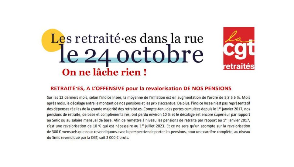 Près de 500 pétitions "+10% d'augmentation immédiate en 2023 de nos retraites et pensions" ont été signées. Elles seront remises en Préfecture dans un 2ème temps début décembre