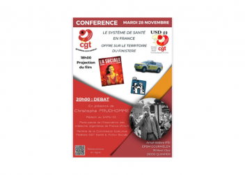 En collaboration avec l'USD29, La CGT du CHIC vous invite à une soirée conférence/débat sur le thème du système de santé en France et plus particulièrement l'offre de santé en Finistère le mardi 28 novembre