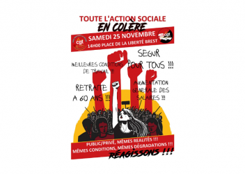 A l’appel de la Cgt du Conseil Départemental, de la Cgt Action sociale et de l’USD, les salarié-e-s du secteur médico-social (privé et public) feront entendre leur colère lors d'un rassemblement le 25 novembre 2023 à 14h place de la Liberté à Brest.
