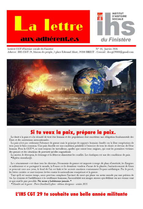 Histoire La lettre aux adhérent(e)s N°30 Publié le 20 Jan. 2026 Numéro 30 Nombre de pages 2 Auteur IHS 29 Télécharger Partager l'article: Télécharger l'article Imprimer l'article